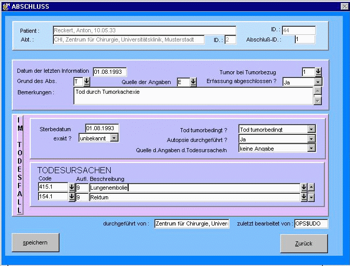 Scheidet der Patient aus der Betreuung aus, werden Abschlußdaten
