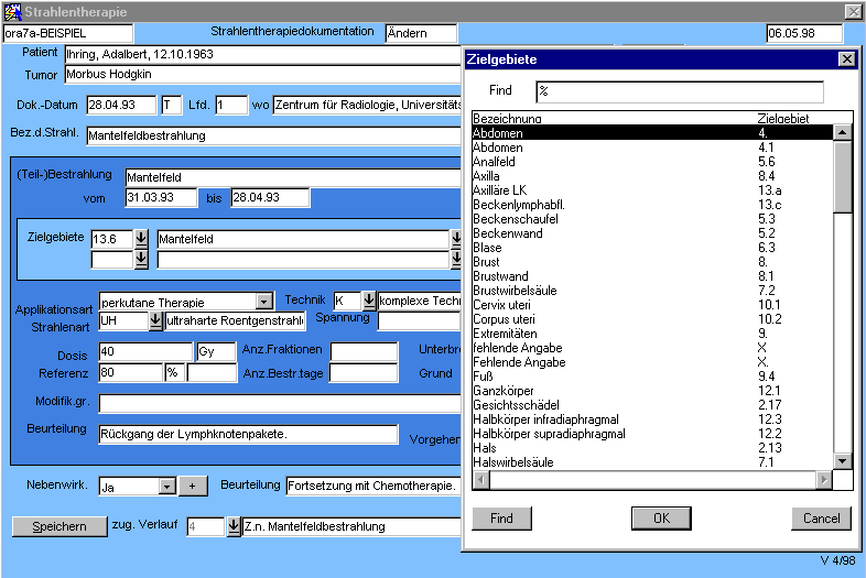 werden können. Detaillierte Therapieerfassungsmasken existieren für